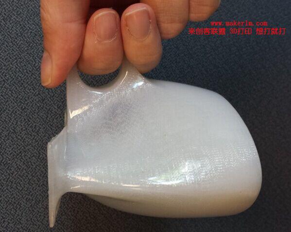 這款杯子使用透明塑料打印。形狀簡單,甚至可以說有些怪異,有如嬰兒的鞋子,其造價卻達(dá)到了昂貴的500美元。研究過程中,Mark Weislogel和他的團(tuán)隊經(jīng)歷了無數(shù)次的實驗,最終使用3D打印出了6只成品。